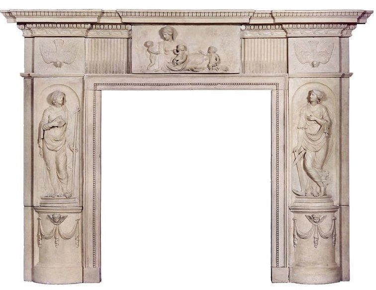 This chimney piece, attributed to Henry Holland, is crafted out of Breche marble. Holland was in his French period when hired by Prinny to redo Kempshott, and would have favored this type of marble prominently featured at Versailles. Photo via 1st Dibs